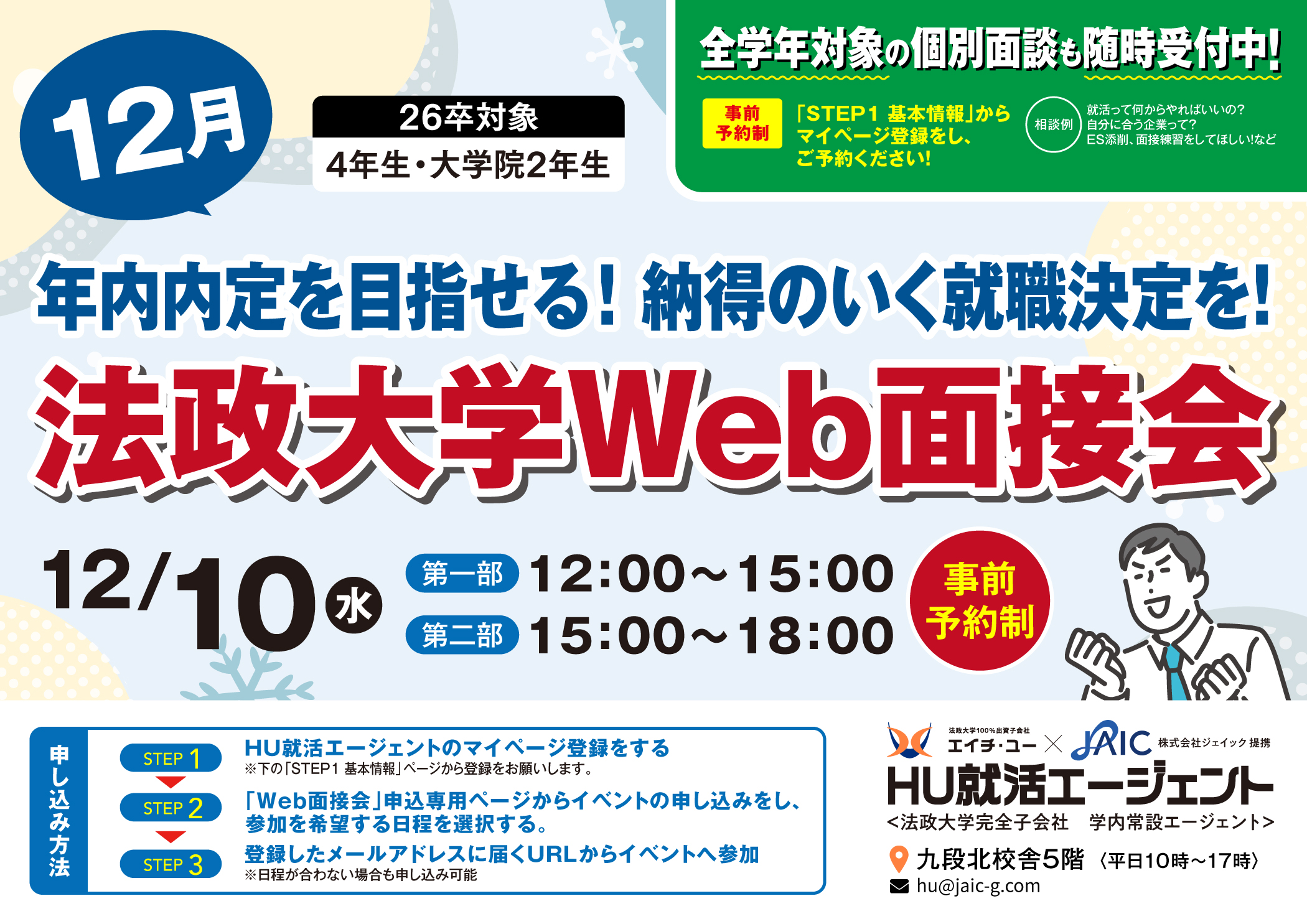 ①年内内定を目指す! 12月10日法政大学Web面接会
