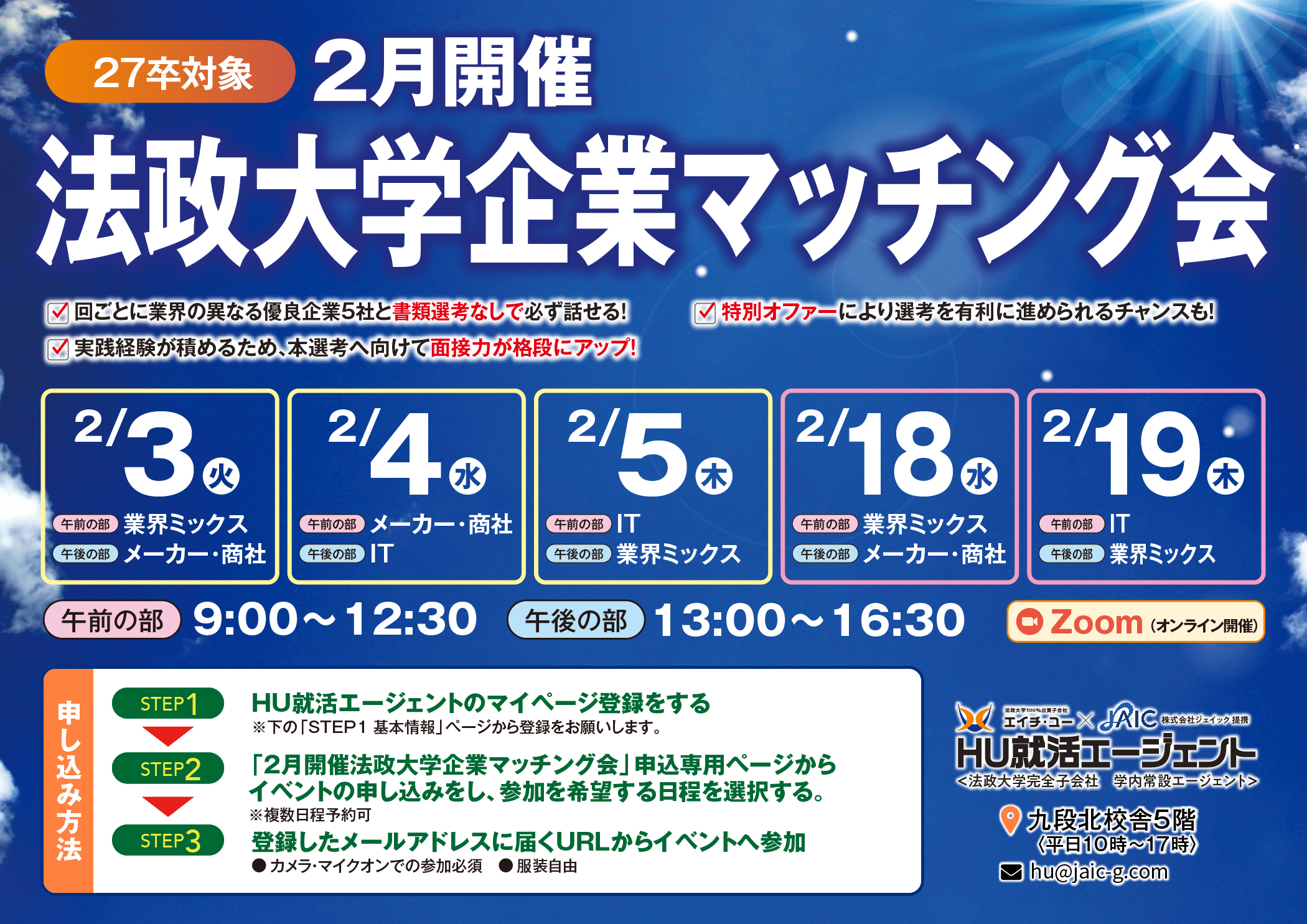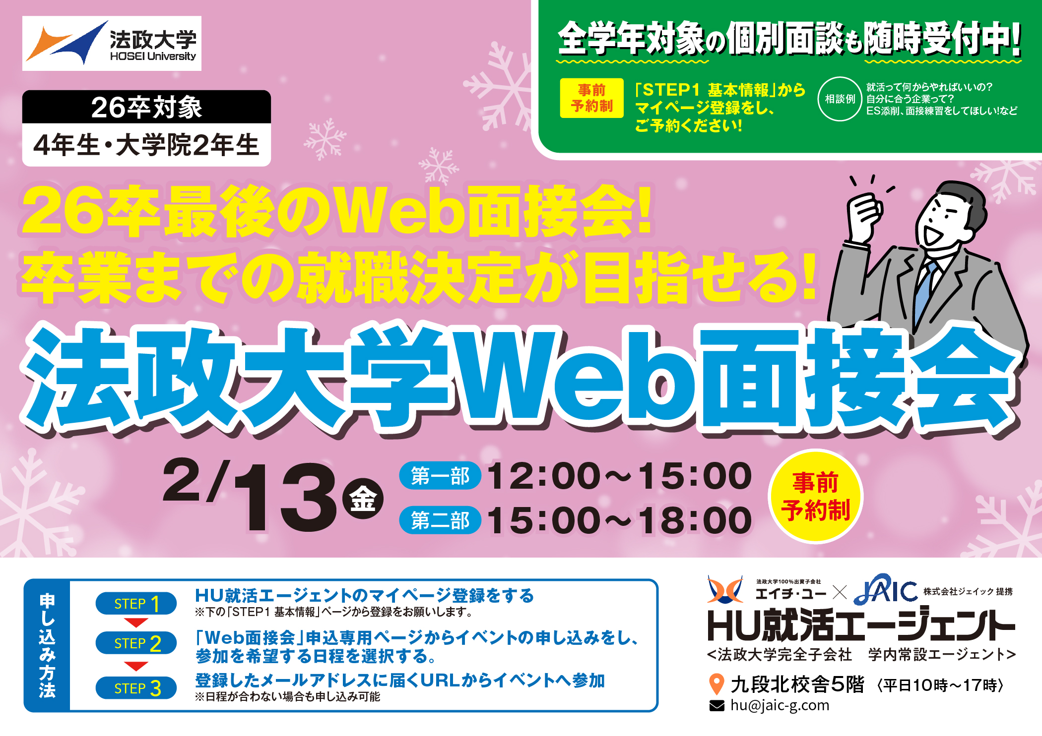 ①2月13日法政大学Web面接会 ※26卒向け最後のイベント!